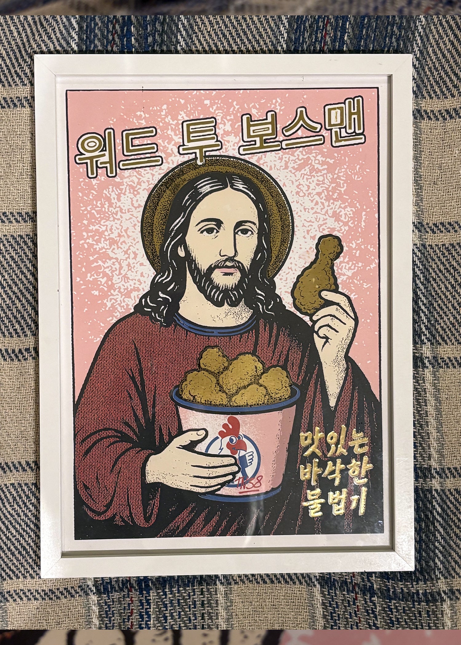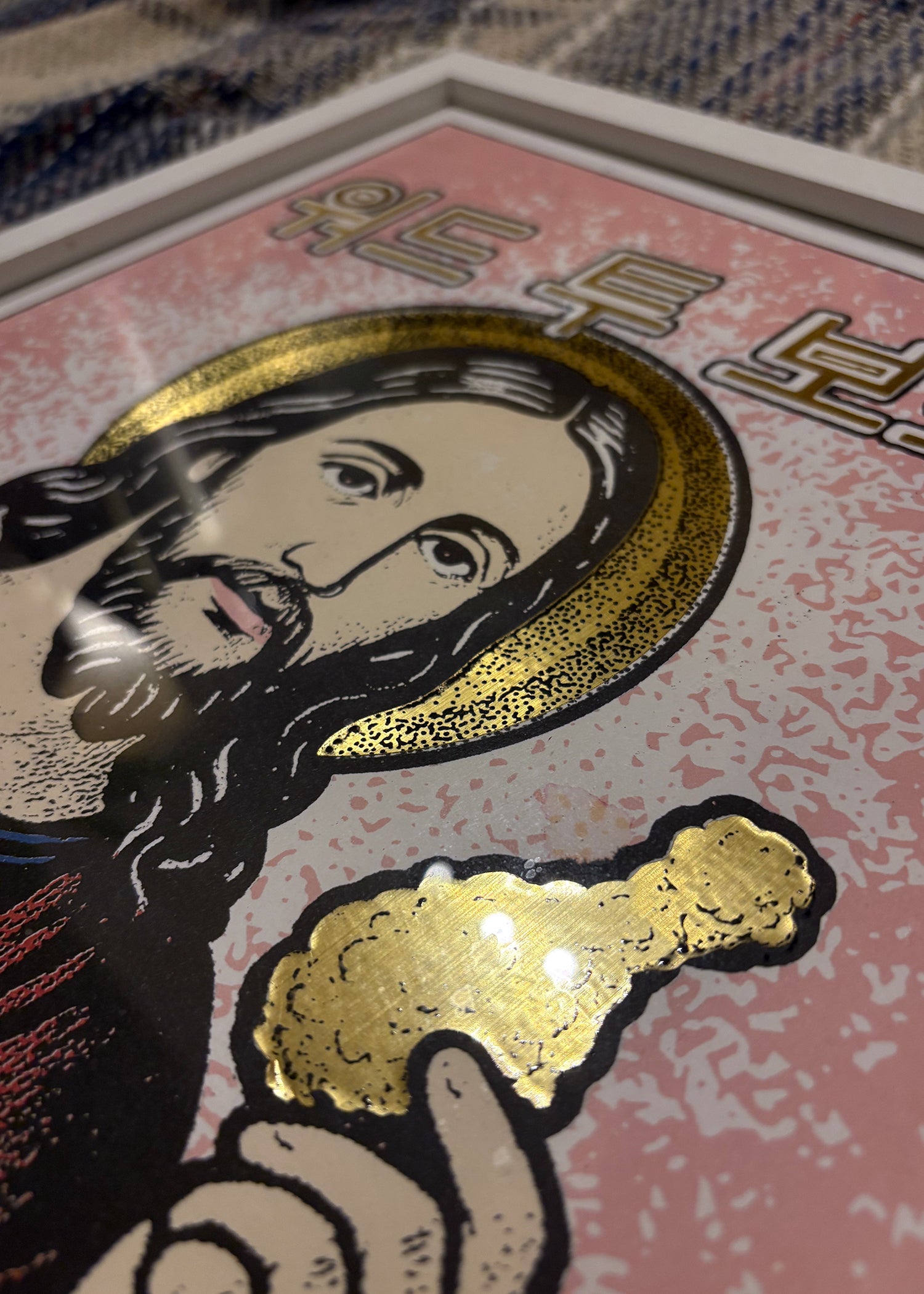1 of 1 – Jesus Eating Fried Chicken Print (with Metallic Highlights)