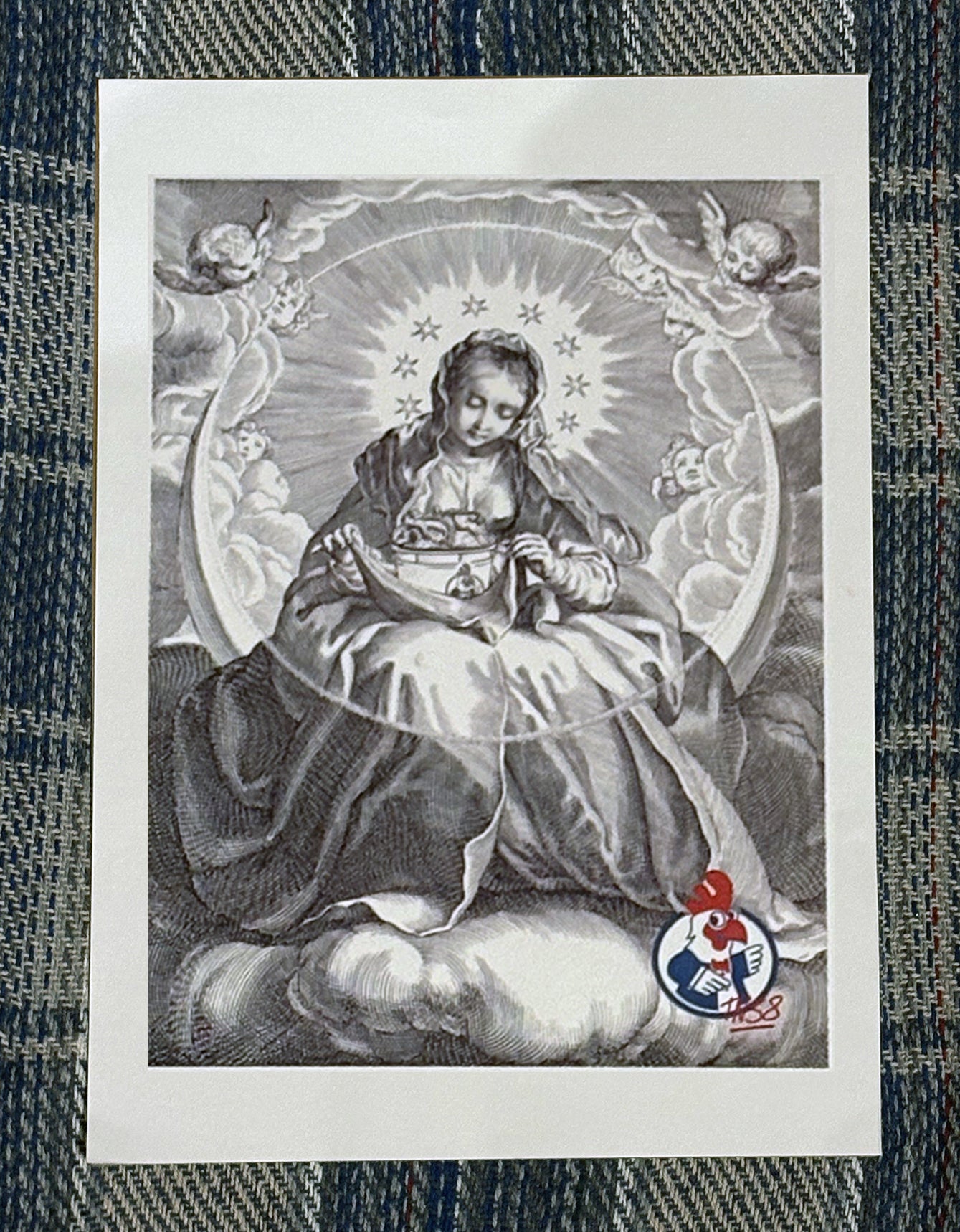 Meet Mary, radiant and serene, now with an unexpected Bossman twist. This refreshed print takes a classic engraving of the Virgin Mary and adds a subtle cameo by the Bossman logo, because even celestial royalty benefits from modern branding.